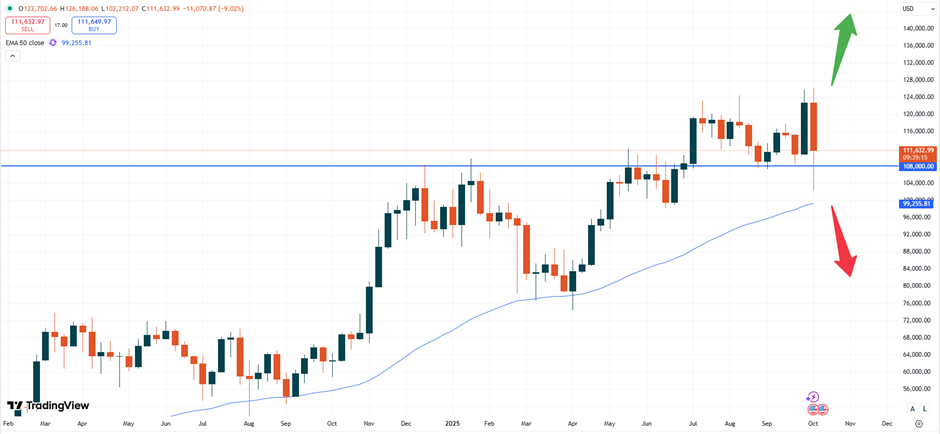 عقب تصريحات الرئيس الأمريكي دونالد ترامب بشأن فرض رسوم جمركية إضافية على الصين، شهدت الأسواق الأمريكية تراجعًا حادًا في الزخم خلال تداولات يوم الجمعة. وقد انعكس هذا التصحيح في الأسواق التقليدية على قطاع العملات الرقمية، مما أدى إلى ضعف ملحوظ في أدائه. برزت اختلافات واضحة بين أداء الرموز المختلفة (Tokens). إذ فقد بعضها زخمًا قويًا، بينما تمكنت أخرى من تعويض جزء كبير من خسائرها. وخلال ما يُعرف بـ”الانهيار السريع” (Flash Crash) فقدت بيتكوين (Bitcoin) نحو 7 مليارات دولار أمريكي من قيمتها السوقية، متراجعةً بما يقارب 10٪ خلال يوم الجمعة الماضي فقط.