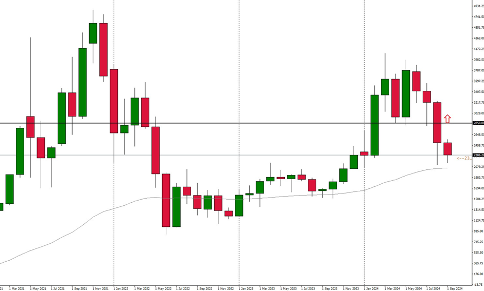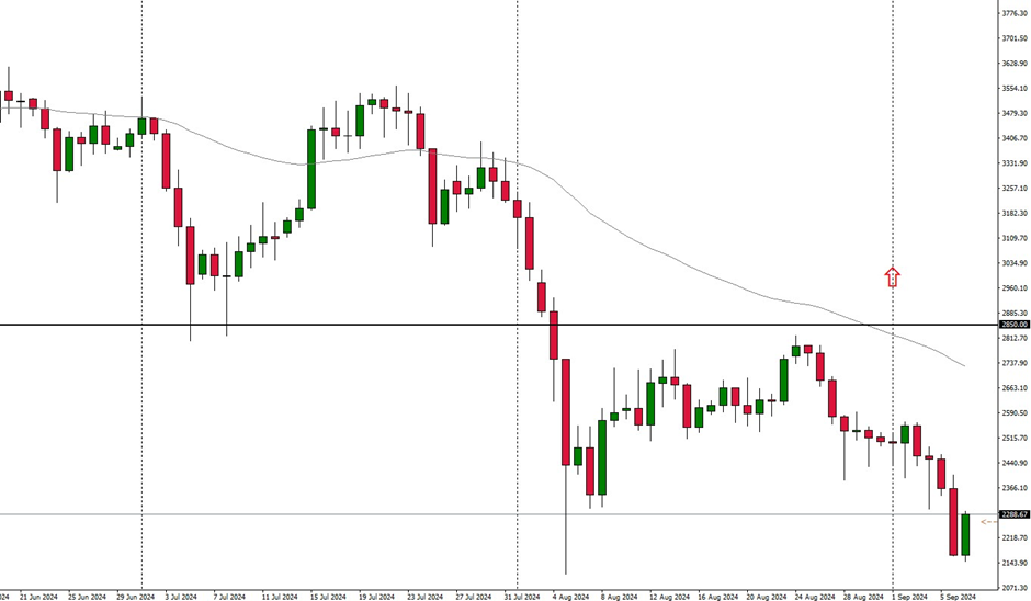 – ETH: Ethereum is trading at USD 2,289.00. The trend here currently looks even weaker than in comparison to Bitcoin. However, based on the monthly chart, the market is currently not too far away from the 50- moving average.