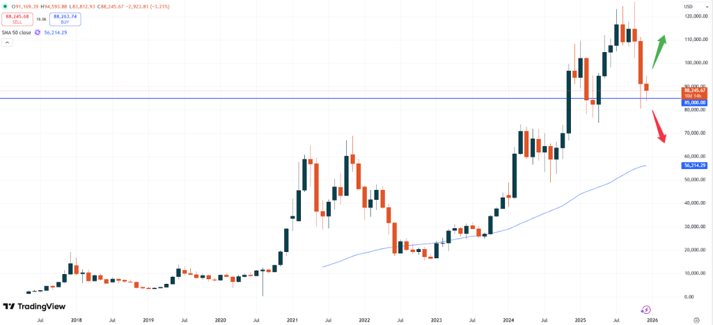 BTC – Bitcoin is trading at USD 88,245. The price of BTC remains prone for potential further profit taking and hence downside momentum. Yet, if the price of the token is able to remain above the USD 85,000 support zone, that might also push the market to higher levels, again.