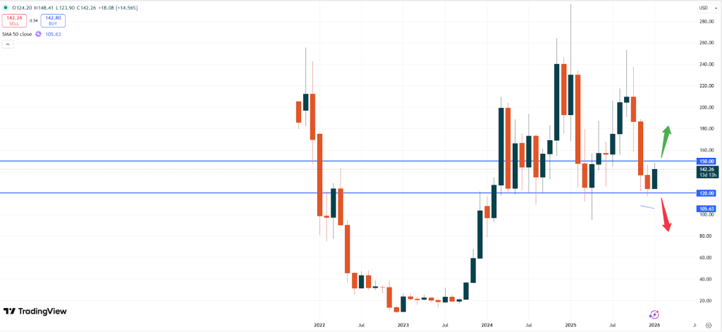 Unless the market breaks below the USD 120.00 zone more upside momentum should be expected. The positive sentiment might hence push this token towards the USD 180.00 level.