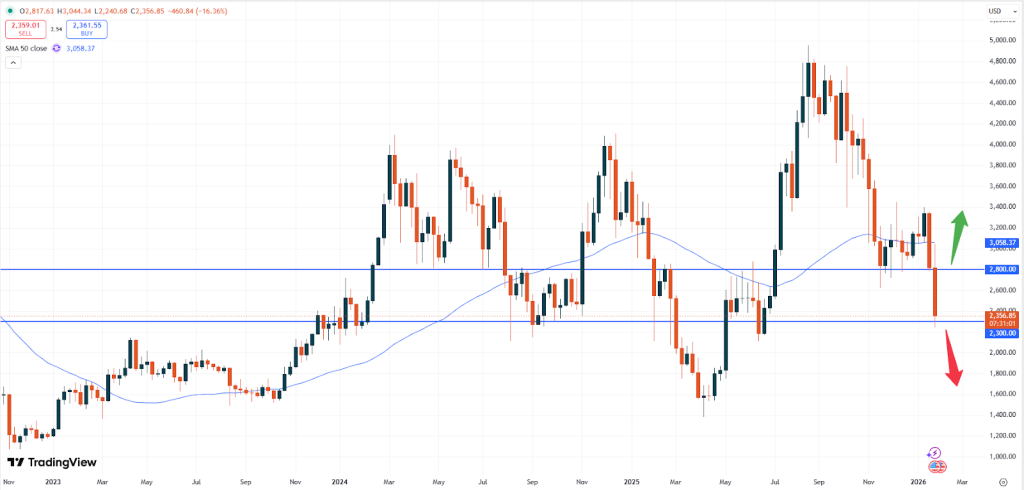 – ETH: Ethereum is currently trading at USD 2,357. Also, this token is losing steam and might still push to lower levels for now. If the market does not stop to fall, the break of the current support of USD 2,300 might be on the cards.