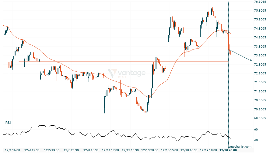 Alibaba se está moviendo hacia un nivel clave de soporte en 72.9900. Este es un nivel que Alibaba ya testeó previamente. Esta podría ser una buena oportunidad para operar, ya sea al precio actual o después de superar este nivel.