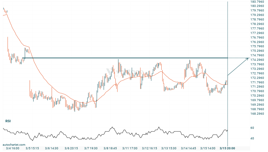 El Apple avanza hacia la línea de 174.5050. Si este movimiento se mantiene, el precio del Apple podría probar el nivel de 174.5050 en un plazo de 15 horas. Pero no se apresure a la hora de operar, porque el par ha probado esta línea en numerosas ocasiones durante el pasado, por lo que este movimiento podría durar poco y acabar rebotando.