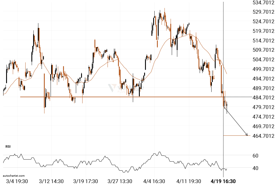 Meta has broken through a line of 484.8150. If this breakout holds true, we could see the price of Meta heading towards 464.5370 within the next 3 days. But don’t be so quick to trade, it has tested this line numerous times in the past, so you should probably confirmation the breakout before placing any trades.