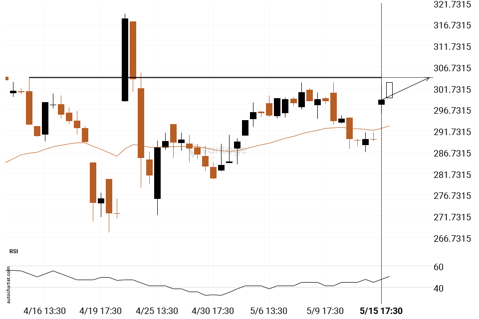 Spotify is moving towards a line of 304.2100 which it has tested numerous times in the past. We have seen it retrace from this position in the past, so at this stage it isn’t clear whether it will breach this price or rebound as it did before. If Spotify continues in its current trajectory, we may see it move towards 304.2100 within the next 2 days.