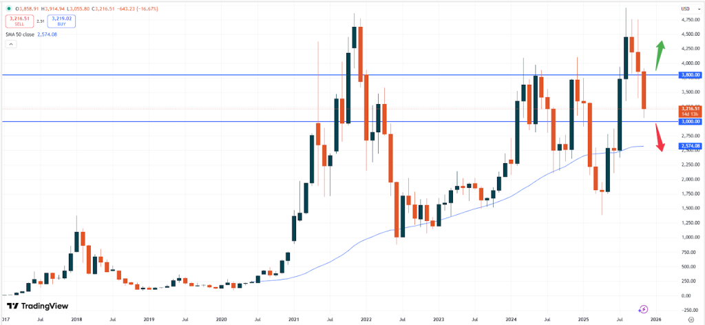 ETHUSD, graphique mensuel